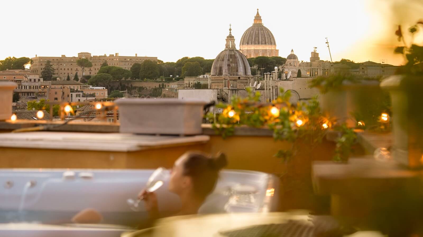 An intimate and rejuvenating moment in our private heated Jacuzzi, surrounded by Rome’s iconic skyline. Perfect after a day exploring the city, or as a timeless experience to indulge in something truly unique.