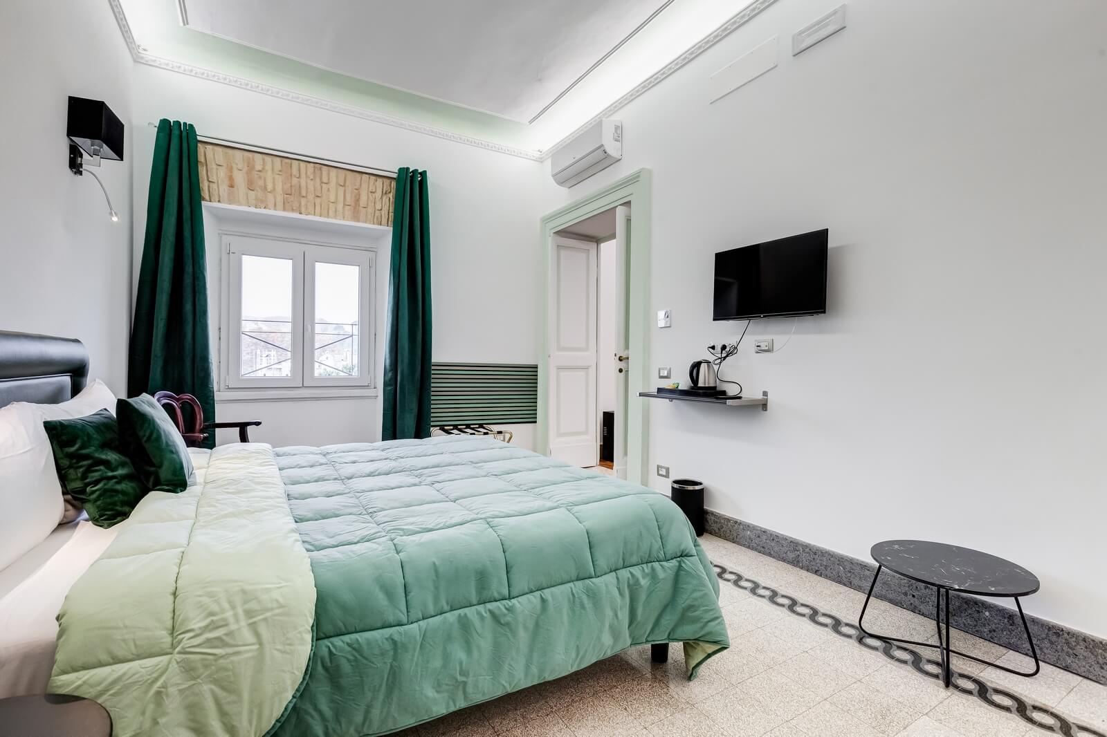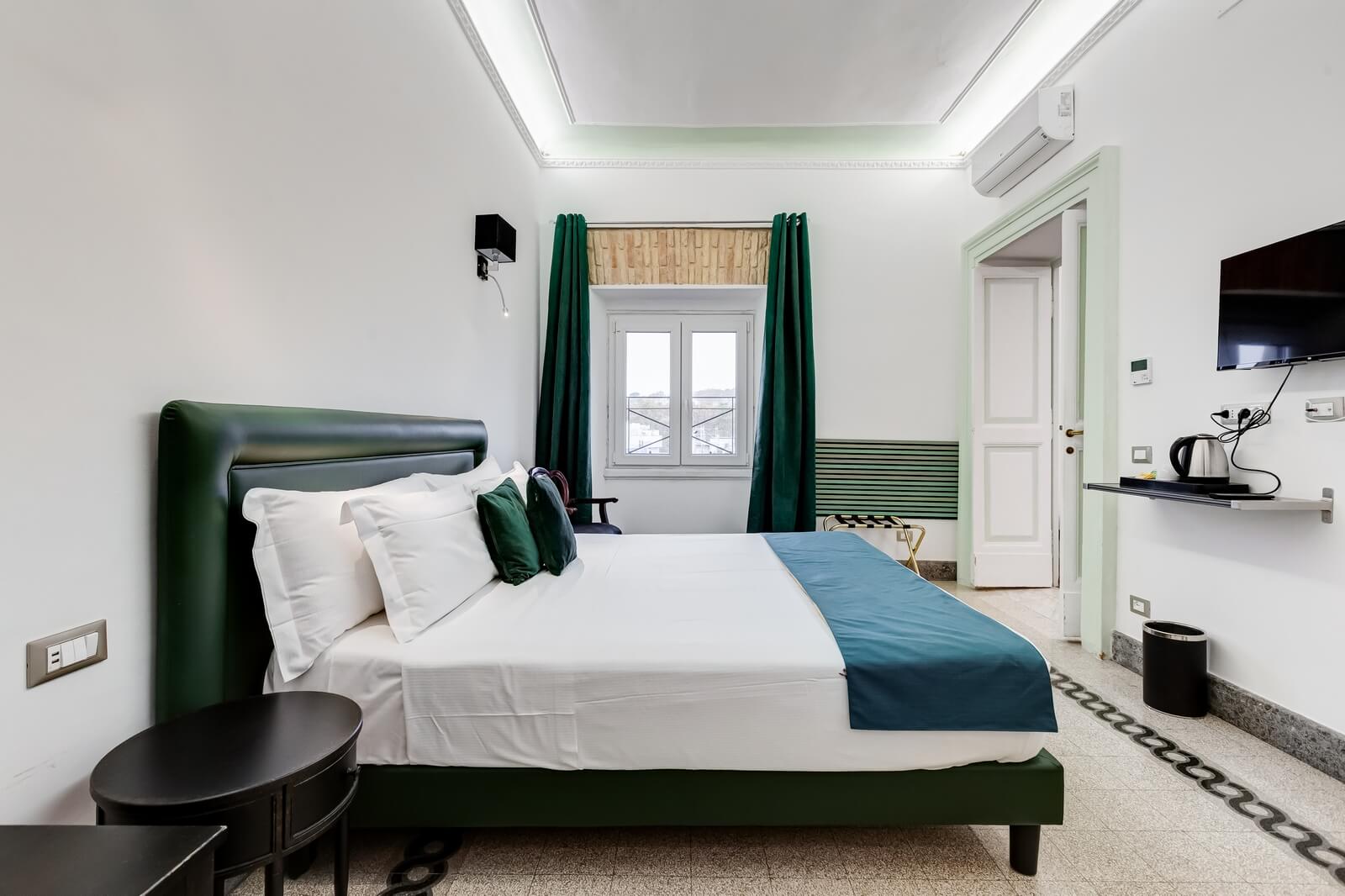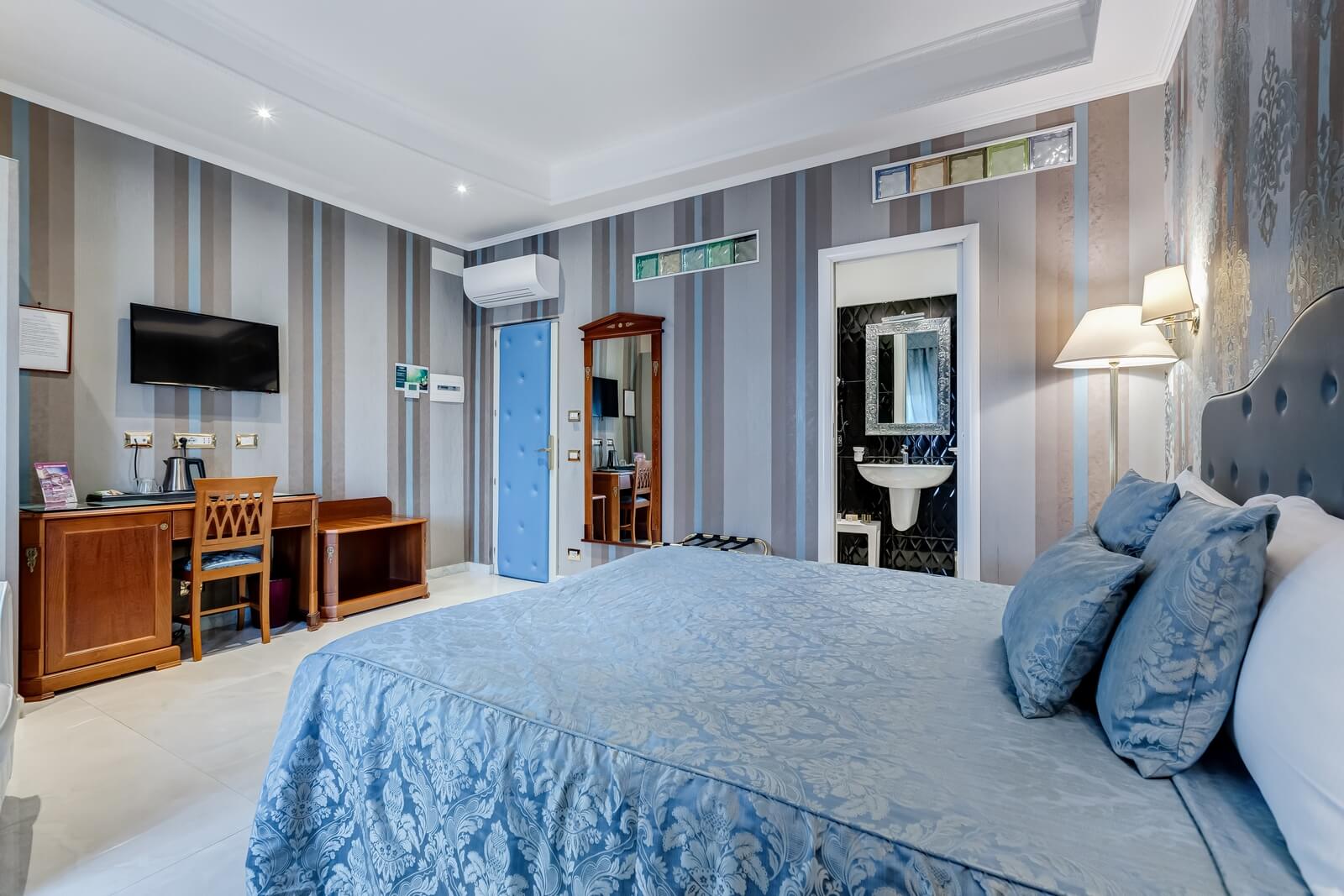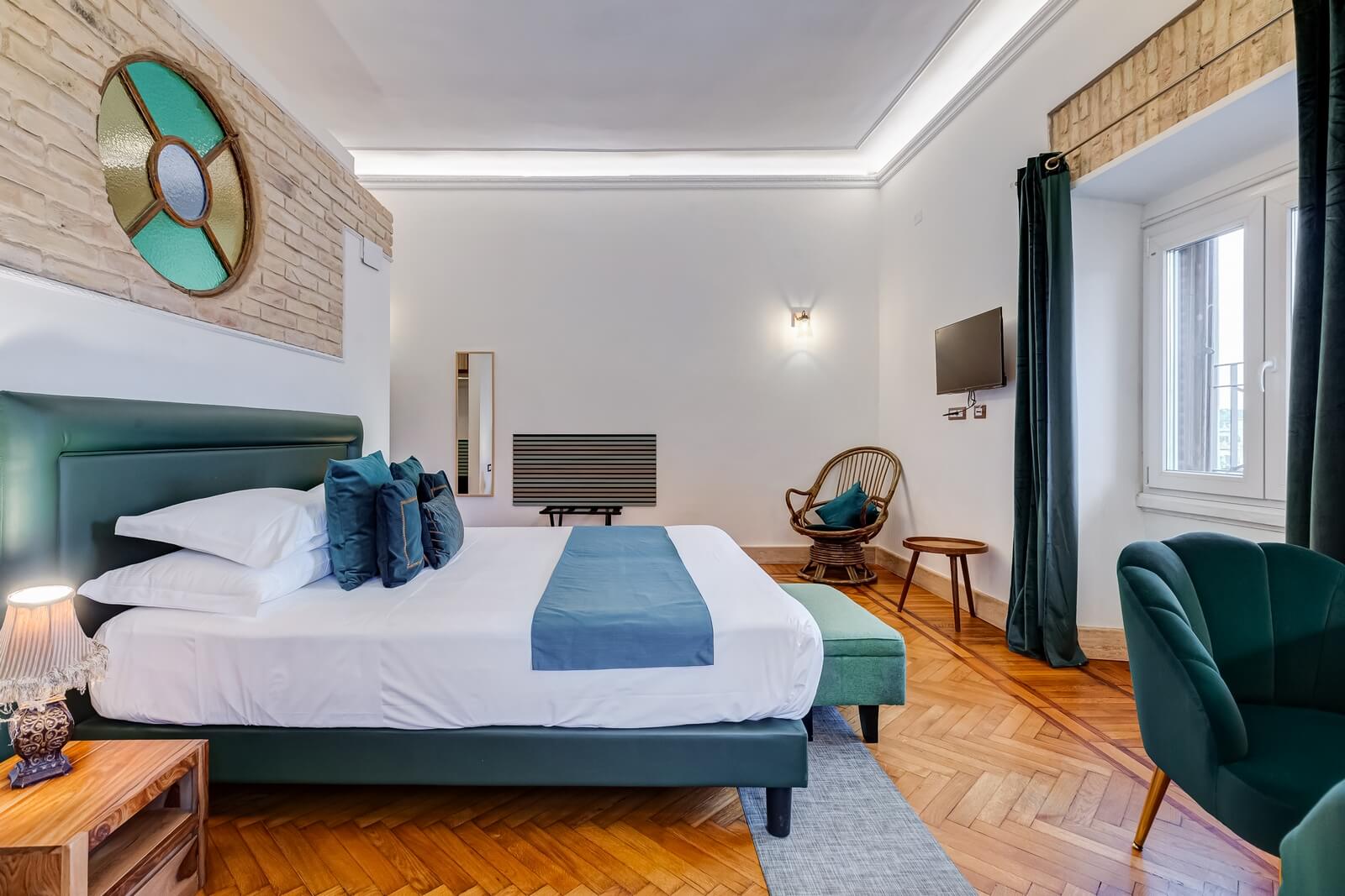 Scopri Navona Queen attraverso le immagini: ambienti eleganti, camere curate nei dettagli, il rooftop panoramico con vista su Roma e l’esclusiva area idromassaggio.