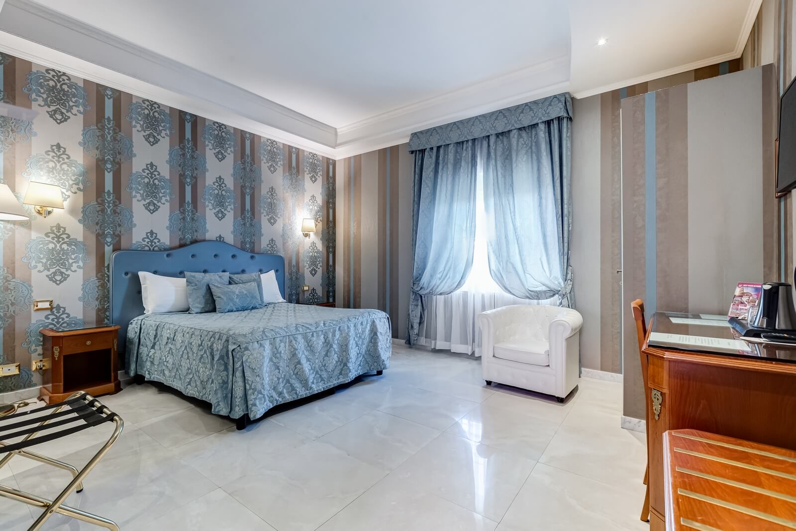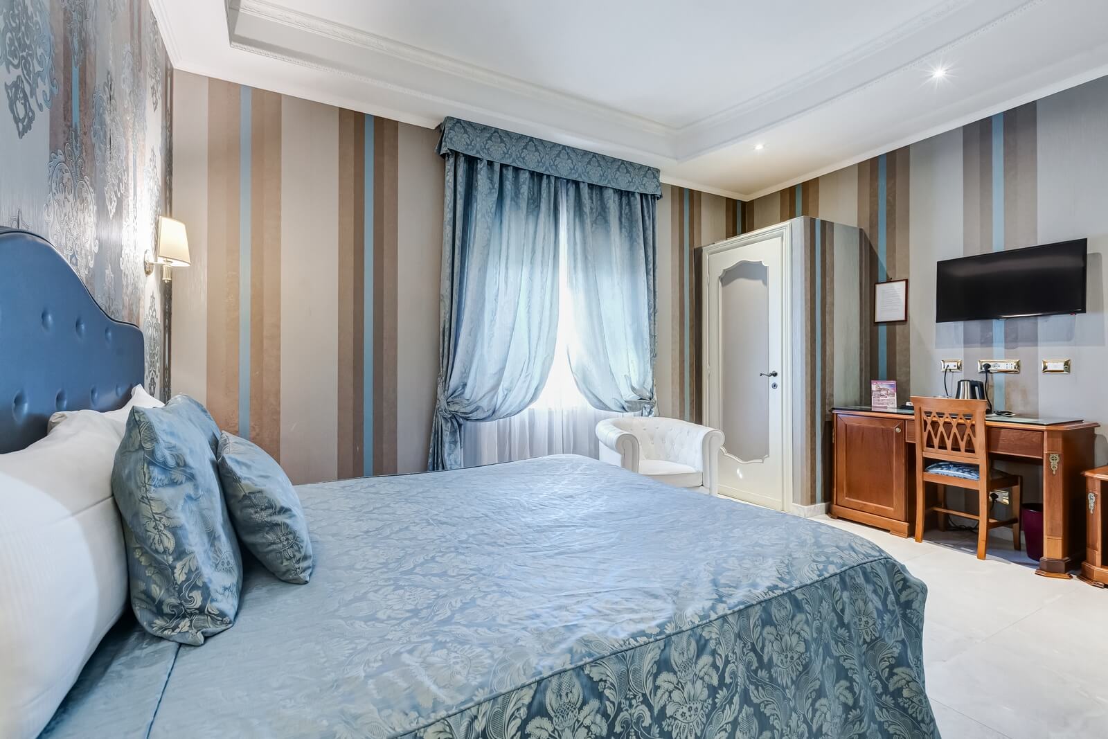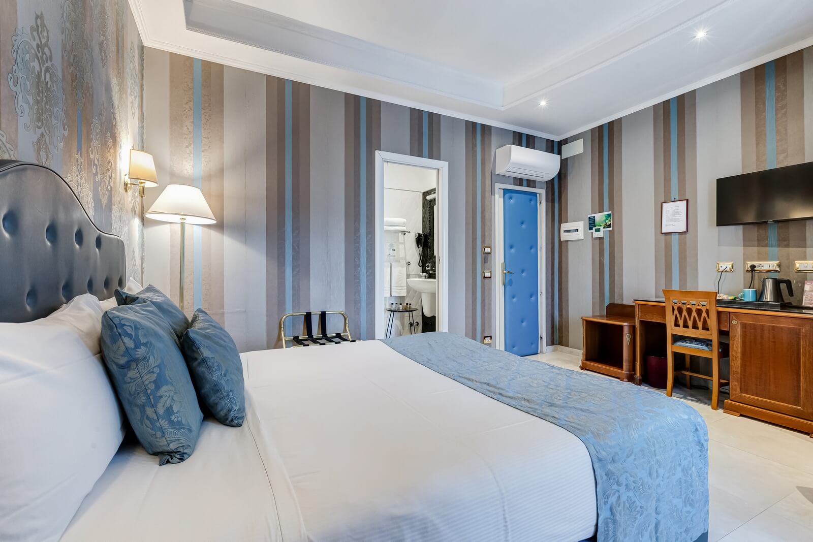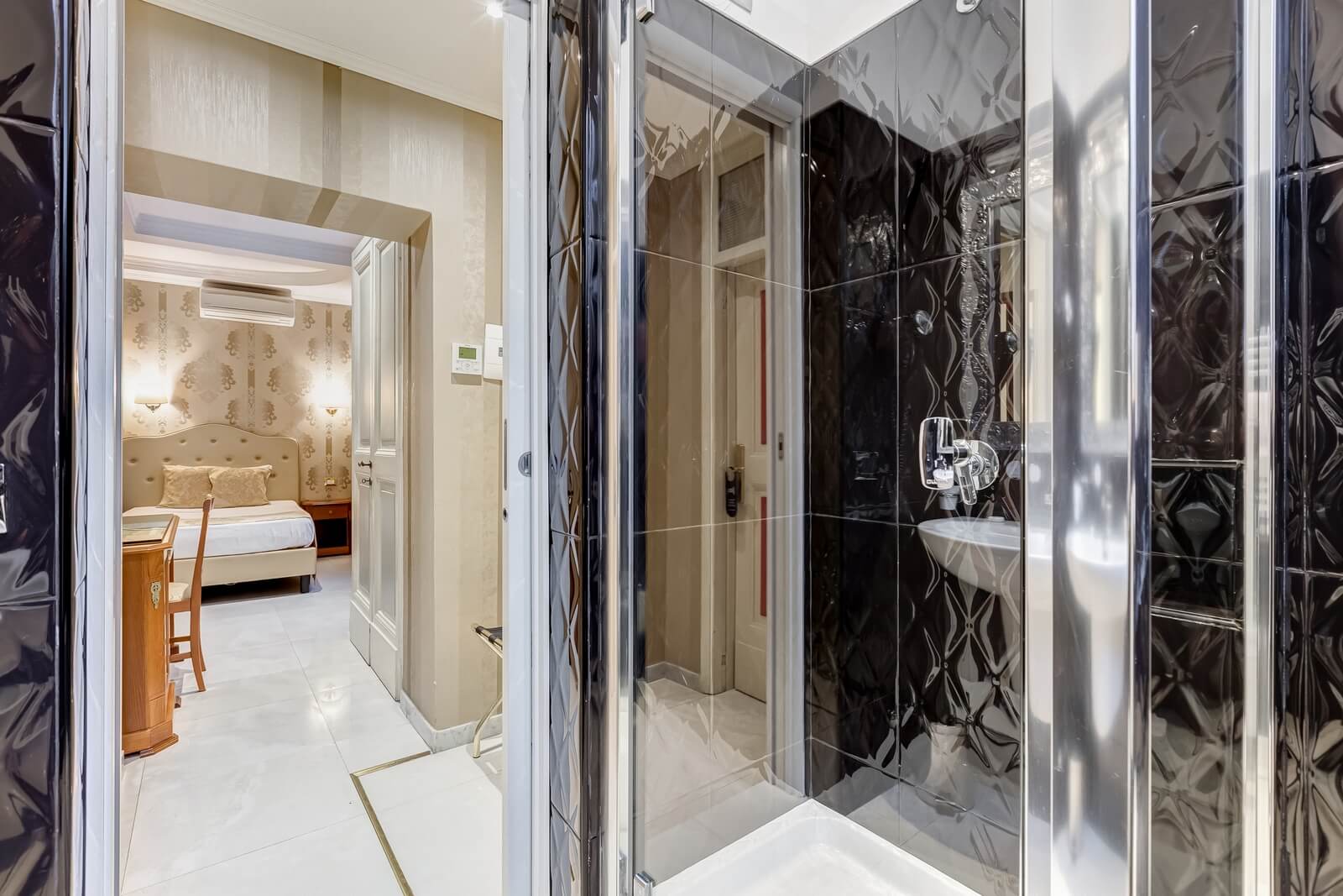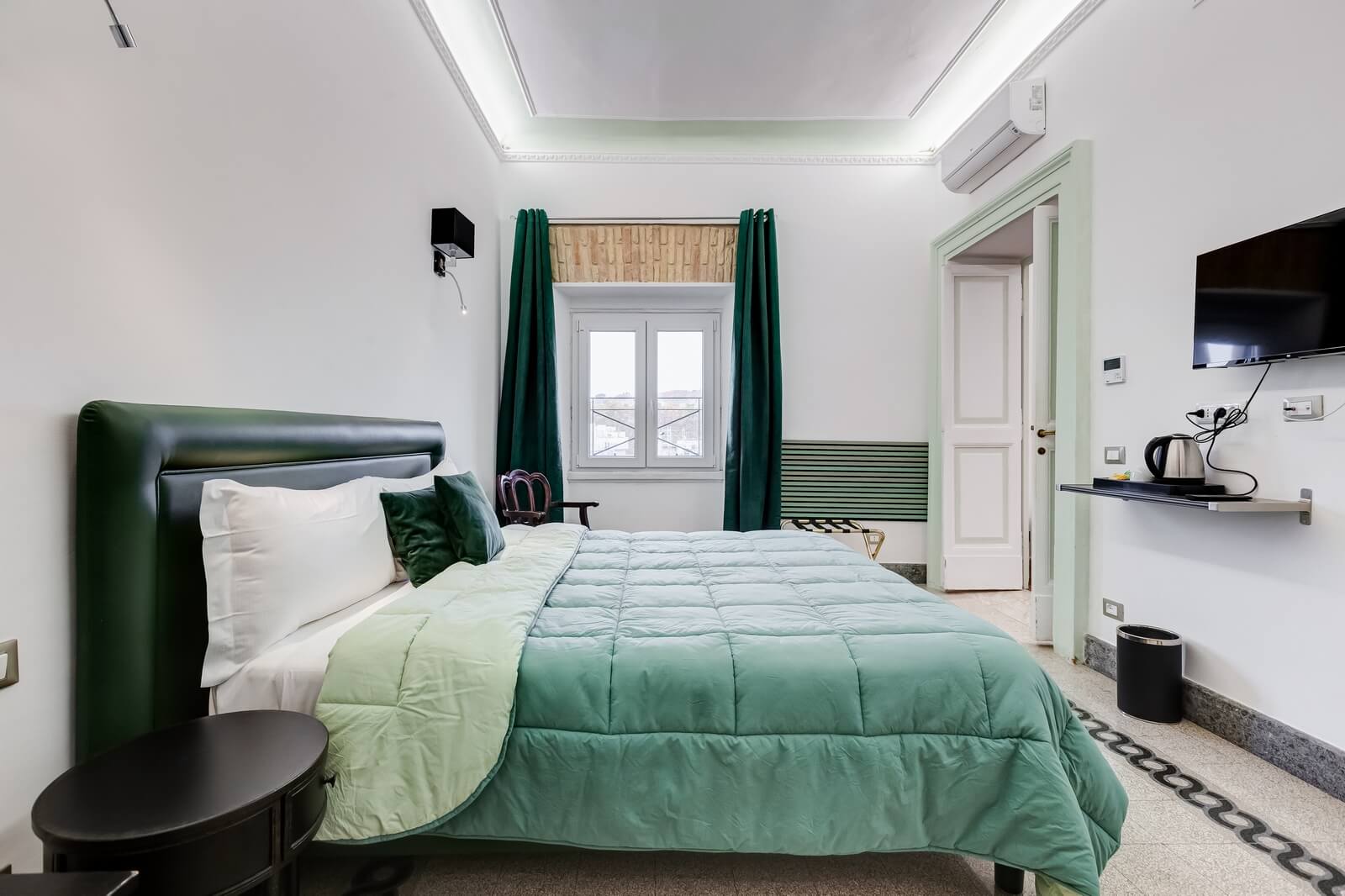 Scopri Navona Queen attraverso le immagini: ambienti eleganti, camere curate nei dettagli, il rooftop panoramico con vista su Roma e l’esclusiva area idromassaggio.
